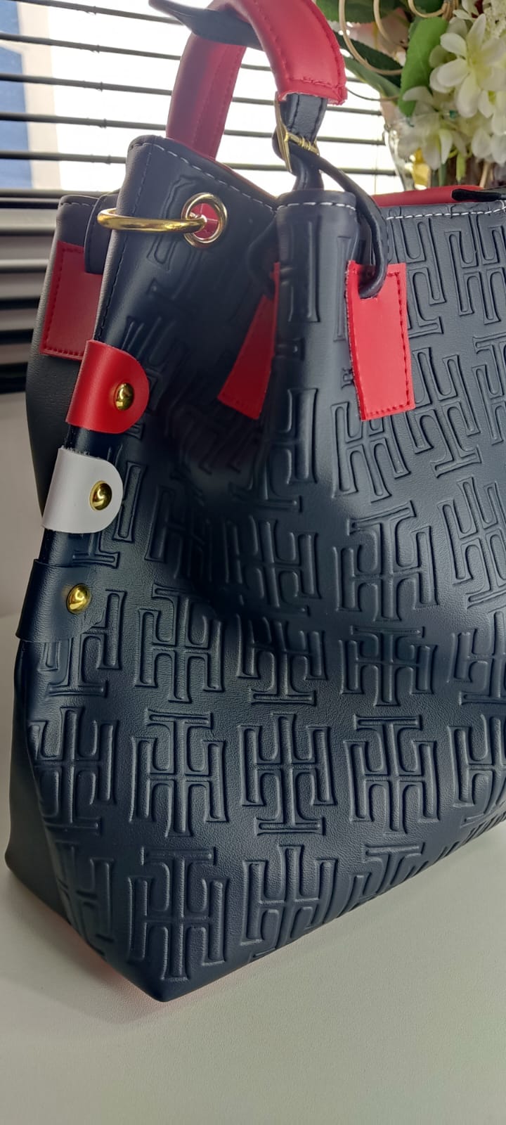 EL Dúo Monserat - Bolso y Billetera, destaca por su calidad, funcionalidad y estilo atemporal. Están fabricados con materiales como poliuretano, combinando resistencia, ligereza y elegancia. Incorporan herrajes metálicos duraderos, forro interno de poliéster para mayor protección y el icónico logotipo de la marca en relieve, reflejando los colores distintivos: Rojo, Azul Marino y blanco. Diseñados para adaptarse a cualquier ocasión, ofrecen un equilibrio perfecto entre practicidad y sofisticación.