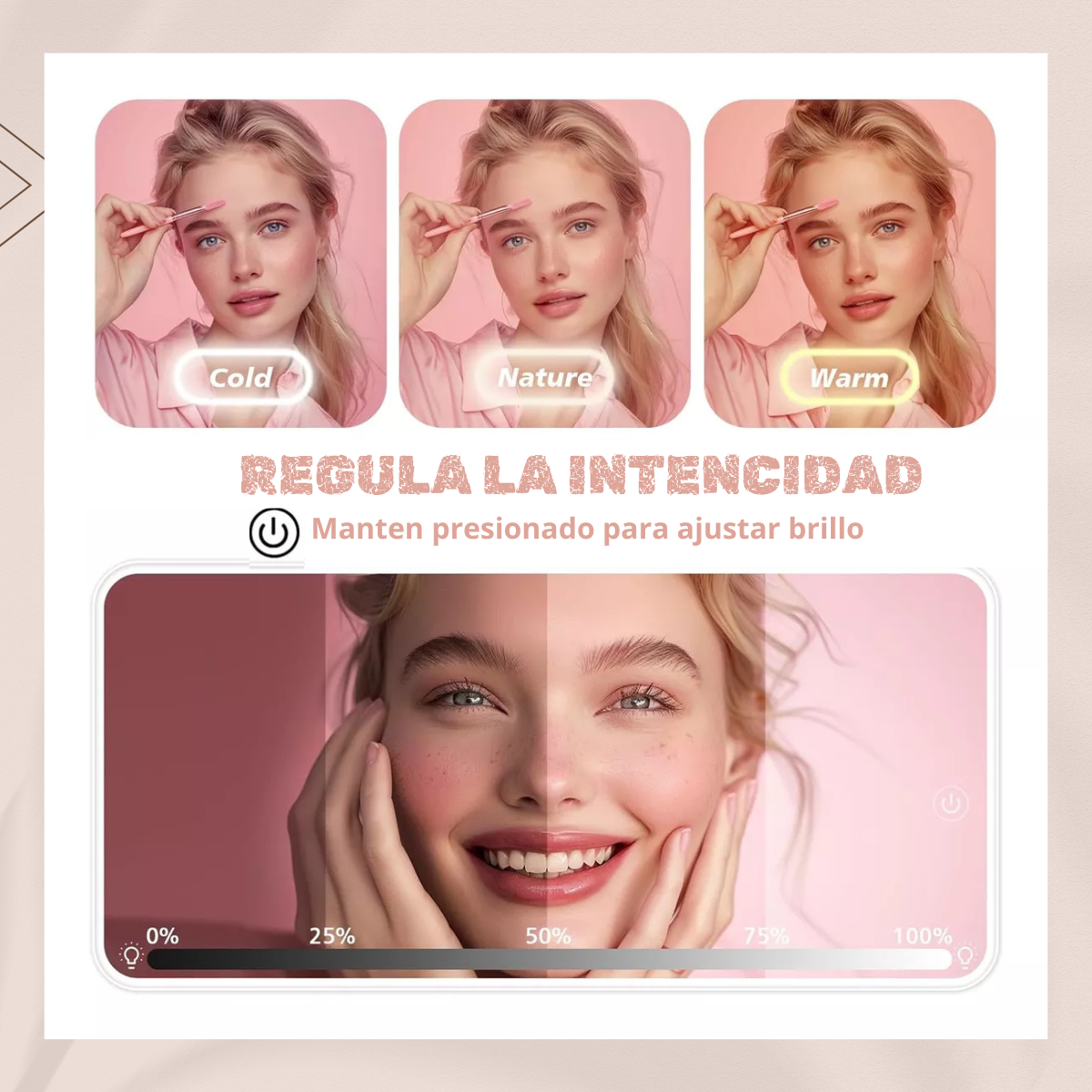 ✅Iluminación Perfecta : Espejo LED con tres niveles de brillo, ideal para maquillarte con precisión en cualquier condición de luz.
